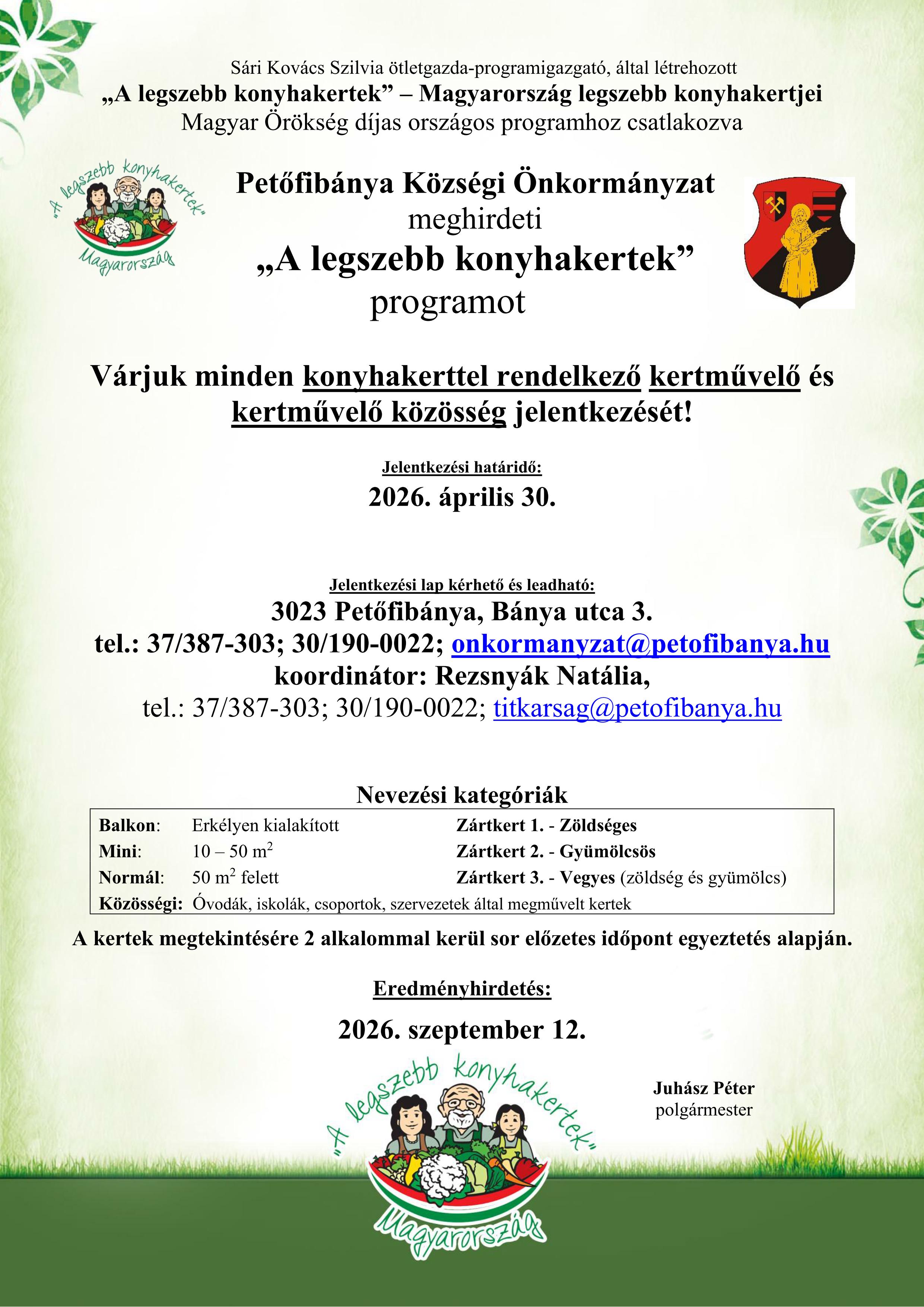 Közösségi média: https://www.facebook.com/onkormanyzat.petofibanyakozsegi